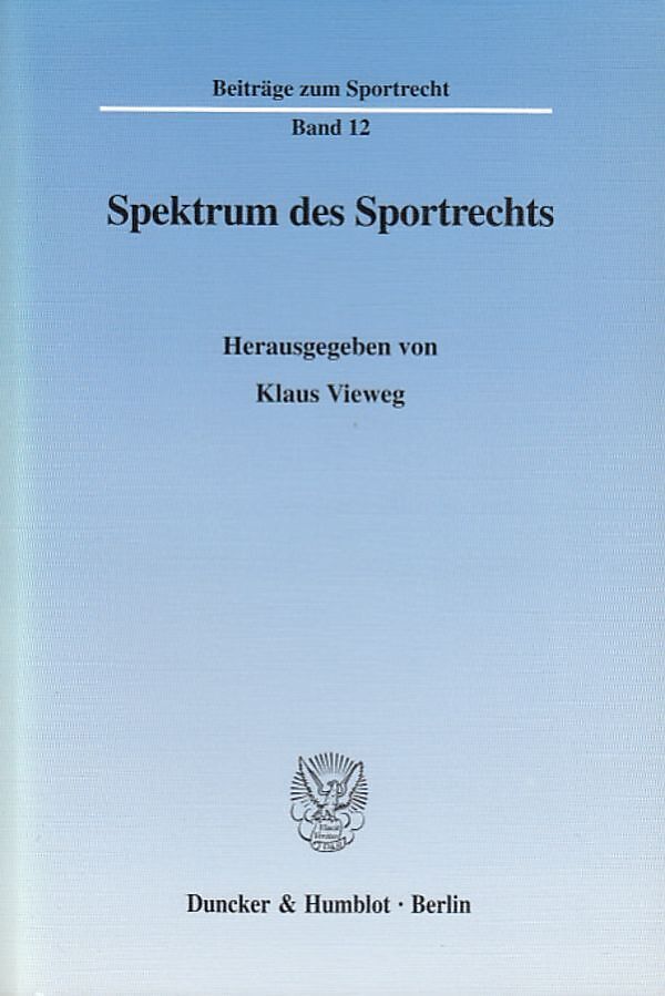 Vom 20. bis 22. Juni 2001 sowie am 13./14. Juni 2002 fanden im Deutschen Olympischen Institut in Berlin zwei Gemeinschaftstagungen der sportrechtlich aktiven Lehrstühle der Universitäten Erlangen-Nürnberg und Tübingen statt. Referenten waren Doktoranden und Wi...