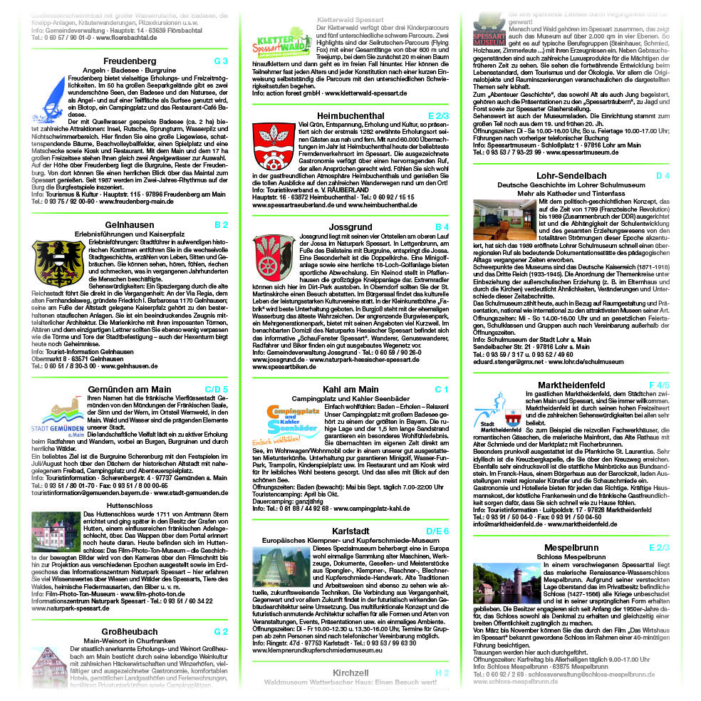 Geschichtsträchtige Altstädte wie in Aschaffenburg, Gelnhausen, Miltenberg oder Tauberbischofsheim sind kulturelle Höhepunkte der Region Spessart. Die ökologische Attraktivität des Spessart rührt aus seiner urwüchsigen Natur und geschützten Wäldern. Im Erlebni...
