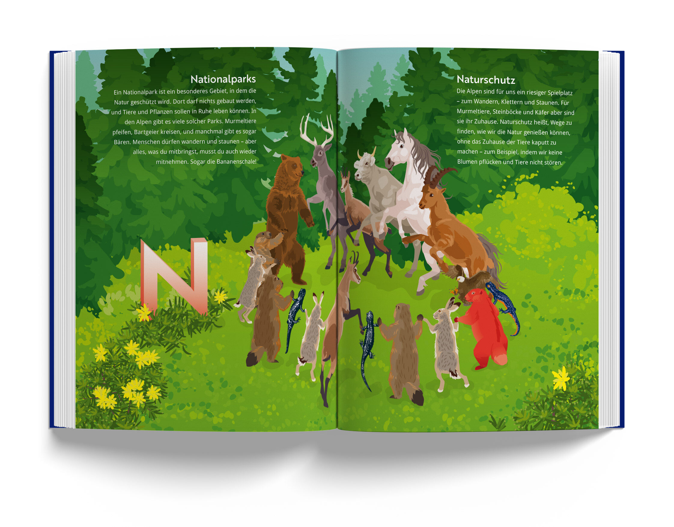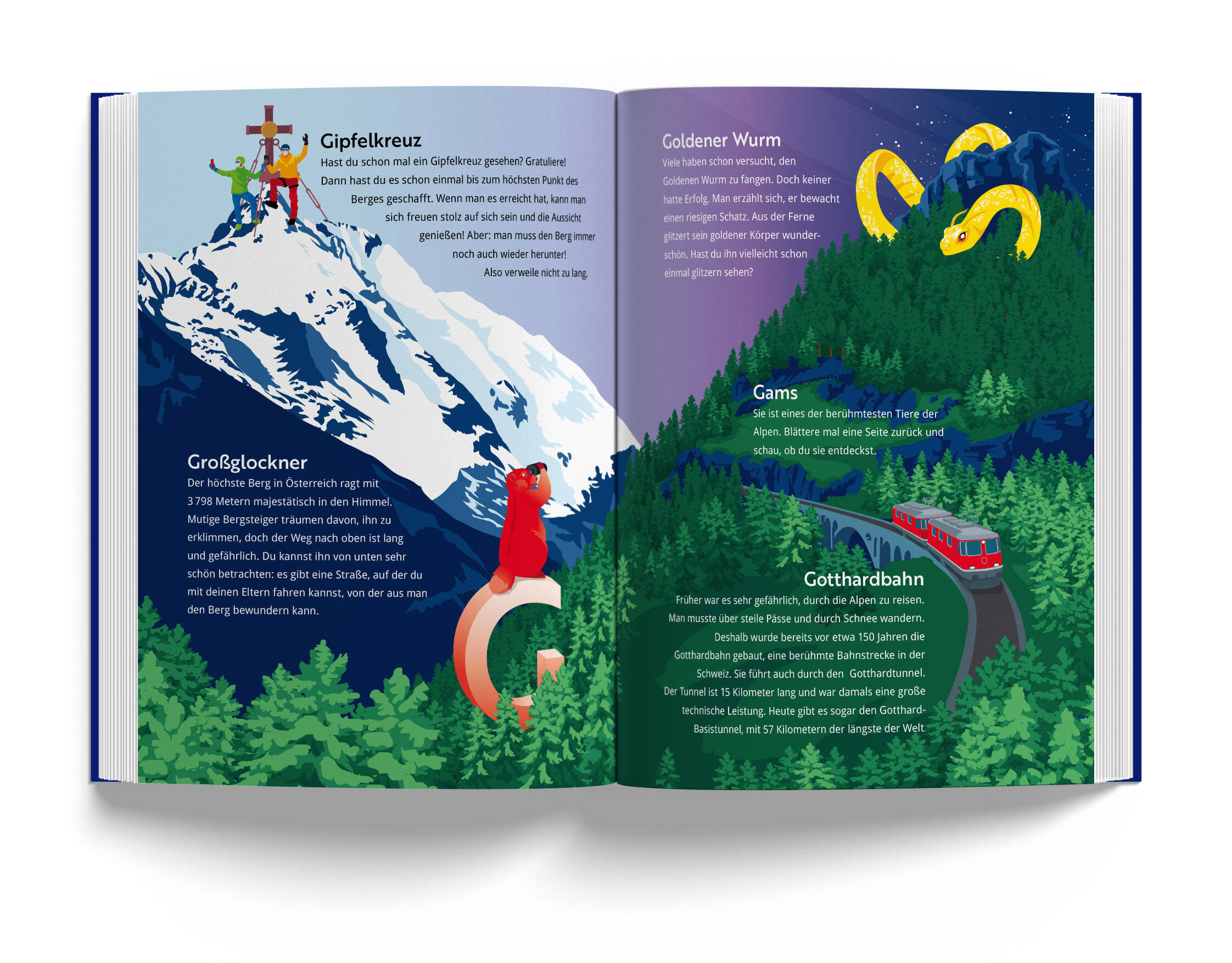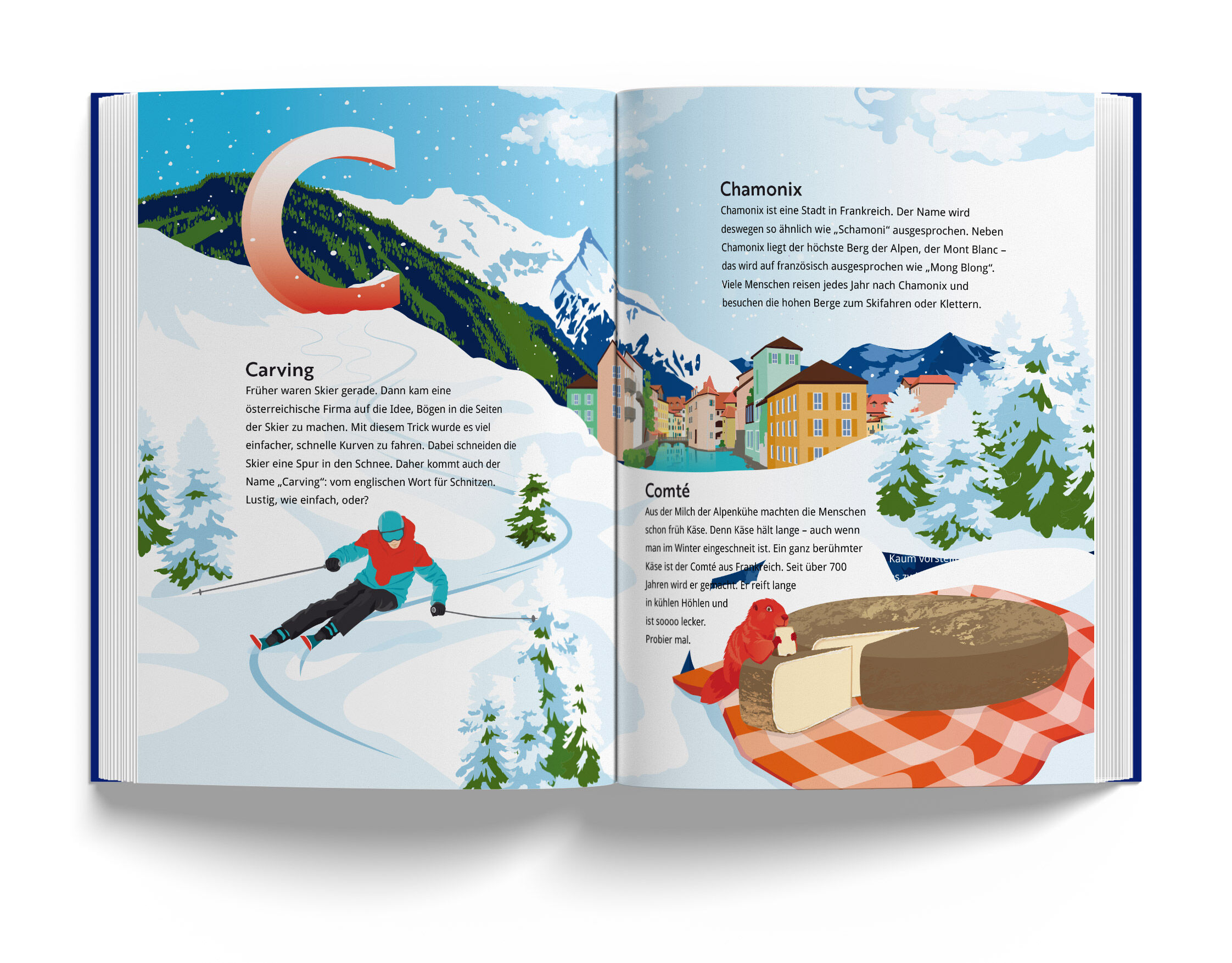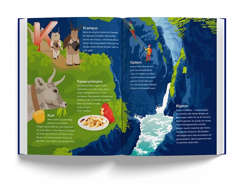 Alpen-ABC ist ein liebevoll gestaltetes Kinderbuch, das den Kindern auf spielerische Weise die Welt der Alpen näherbringt. Zu jedem Buchstaben des Alphabets gibt es eine Doppelseite, auf der ein Berg oder eine Region sowie ein Tier, eine Pflanze oder ein typis...