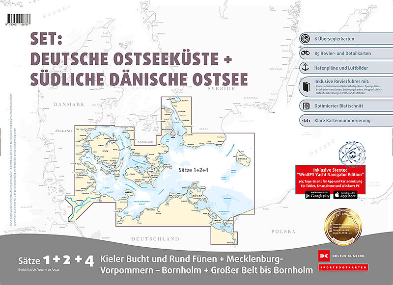 Dieses Set enthält die drei Kartensätze: Satz 1: Kieler Bucht und Rund Fünen (Ausgabe 2024) Satz 2: Mecklenburg-Vorpommern Bornholm (Ausgabe 2024) Satz 4: Großer Belt bis Bornholm (Ausgabe 2024) Navigieren Sie mit insgesamt 6 Überseglerkarten, 85 Revier- und D...