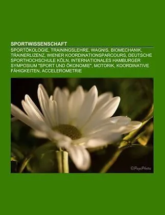 Quelle: Wikipedia. Seiten: 51. Kapitel: Sportökologie, Trainingslehre, Wagnis, Biomechanik, Trainerlizenz, Wiener Koordinationsparcours, Deutsche Sporthochschule Köln, Internationales Hamburger Symposium "Sport und Ökonomie", Motorik, Koordinative Fä...
