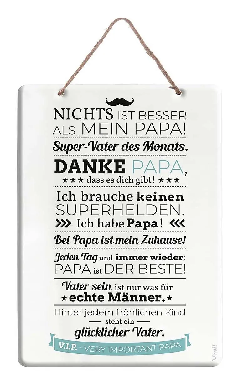 Eine Ode an die Hausherren: Vätern kann nicht oft genug gedankt werden für ihren alltäglichen Einsatz in allen Lebenslagen. Die Spruchtafel erinnert jeden Tag mit Humor und viel Liebe zwischen den Zeilen daran, wie vielseitig und unentbehrlich ein Vater ist. M...