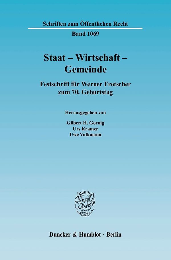 Zum 70. Geburtstag von Werner Frotscher haben 40 Autoren öffentlich-rechtliche Beiträge zu Staat, Wirtschaft und Gemeinde verfasst. Damit wollen sie Ideen und Forschungen des Marburger Juraprofessors aufgreifen und vertiefen, ihm zugleich aber auch ihren Dank ...
