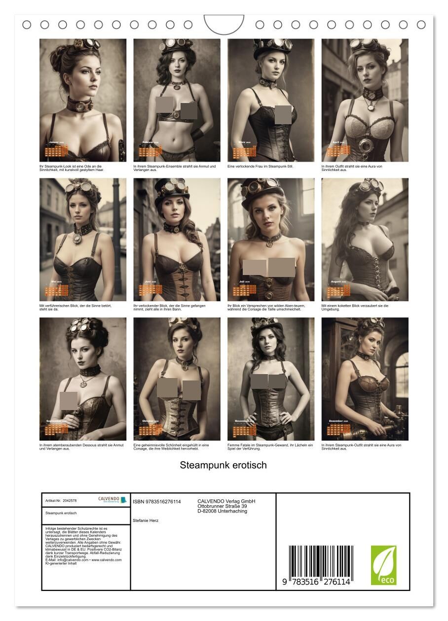 Tauche ein in eine faszinierende Welt, in der Eleganz auf Abenteuer trifft und Sinnlichkeit auf Maschinerie: Unser exklusiver Steampunk-Erotik Wandkalender lädt dich zu einer Reise durch zwölf atemberaubende KI-generierte Porträtfotos ein. Jeder Monat präsenti...