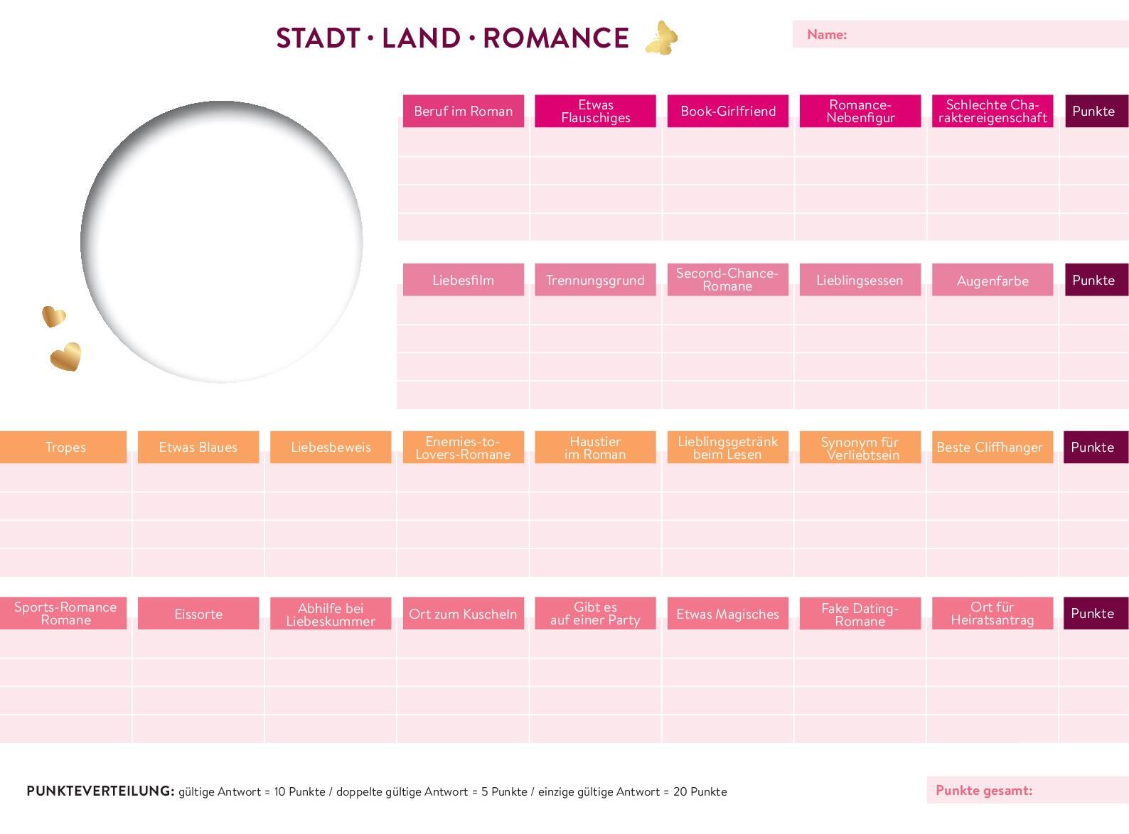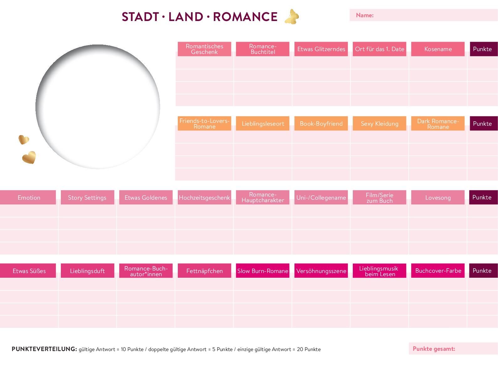 Romantischer Spielspaß für alle New-Adult-Fans • Romantik pur : 52 Kategorien rund um Liebe, Beziehungen und heißgeliebte Romance-Romane • Einzigartig : Mit eingebettetem Buchstaben-Anzeiger als Hingucker und Anti-Schummel-Garant bim Buchstaben-Wähl...