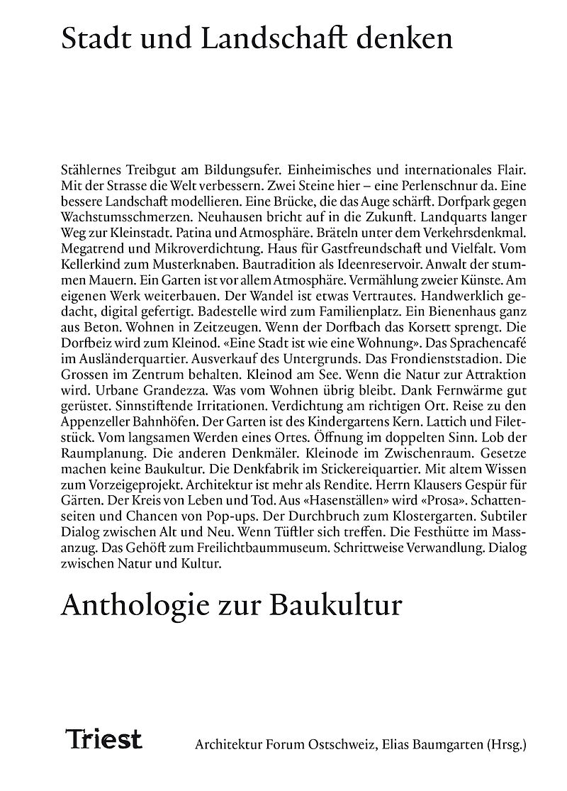 Das wachsende Interesse in der Öffentlichkeit am Baugeschehen könnte Pflege und Erhalt einer hochstehenden Baukultur und die Umsetzung mutiger, einfallsreicher Projekte begunstigen. Doch wie kann man die Bevölkerung zur Debatte einladen? Wie kann man den Fachd...