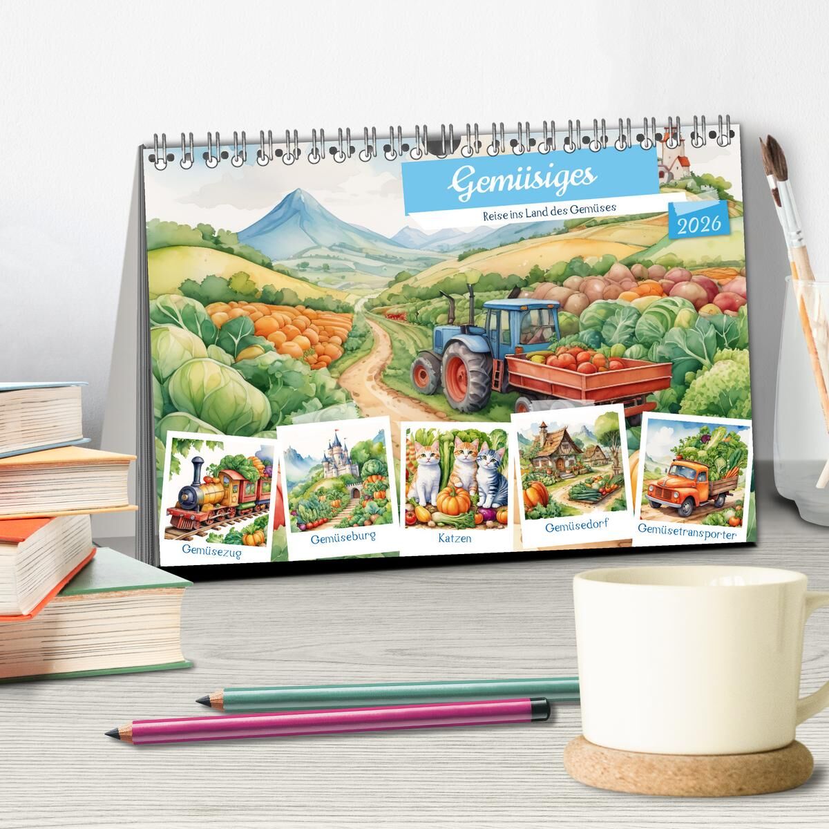 Gemüsiges - Reise ins Land des Gemüses (Tischkalender 2026 DIN A5 quer), CALVENDO Monatskalender