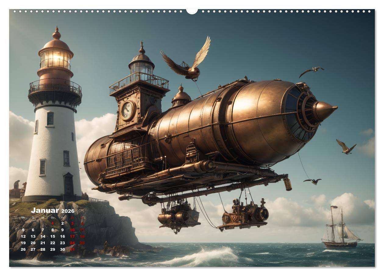 Steampunk - Die Welt der Leuchttürme (Wandkalender 2026 DIN A2 quer), CALVENDO Monatskalender