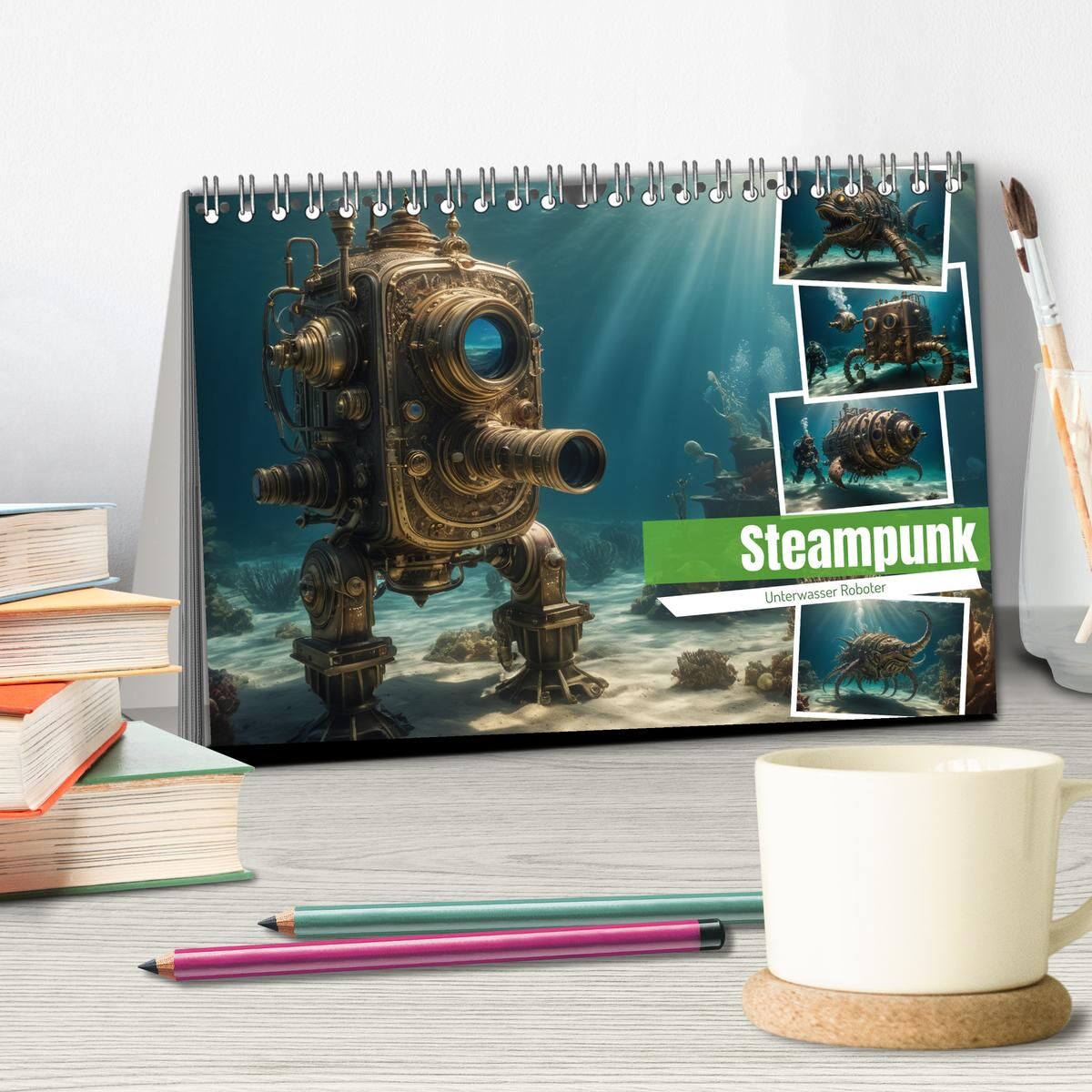 Steampunk - Unterwasser Roboter (Tischkalender 2026 DIN A5 quer), CALVENDO Monatskalender