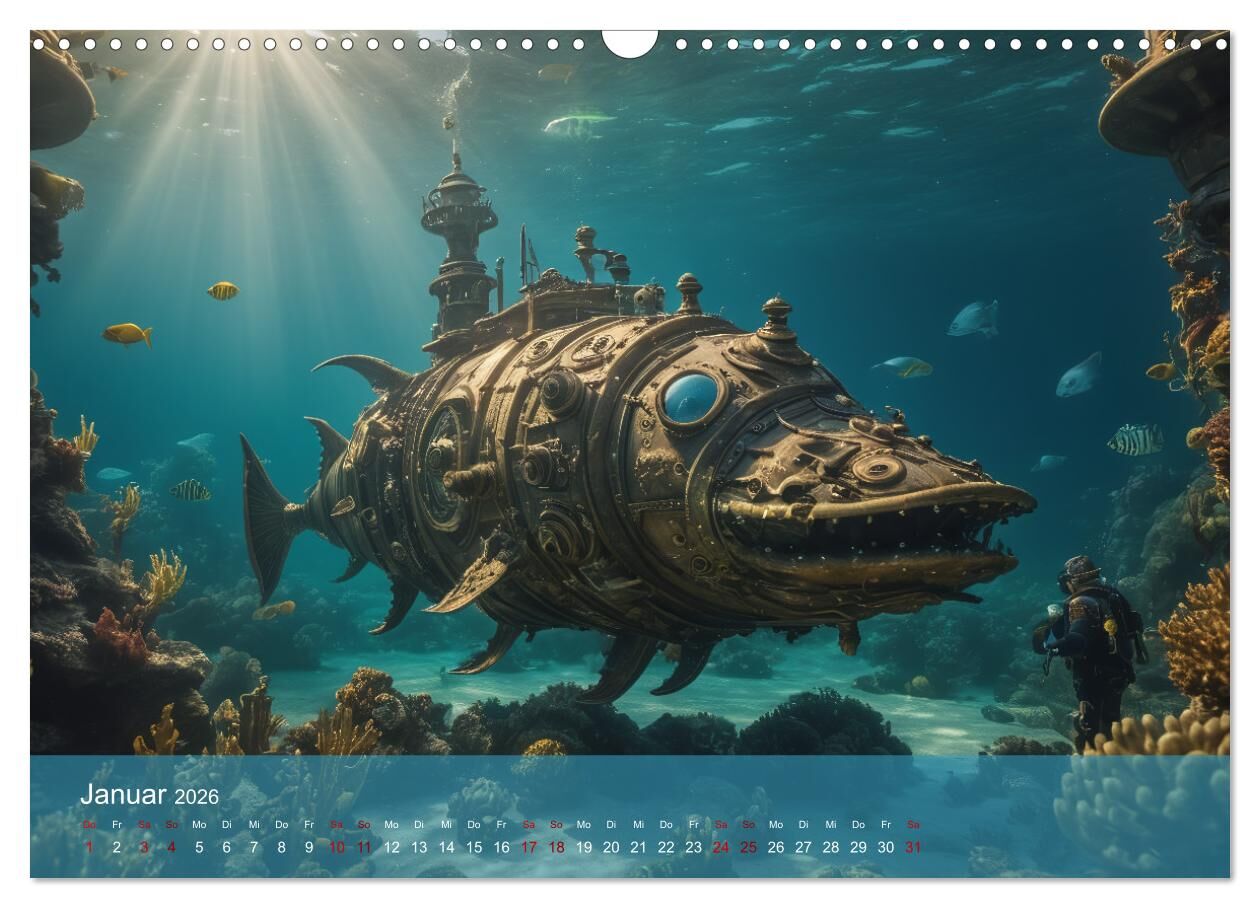 Steampunk - Unterwasser Roboter (Wandkalender 2026 DIN A3 quer), CALVENDO Monatskalender