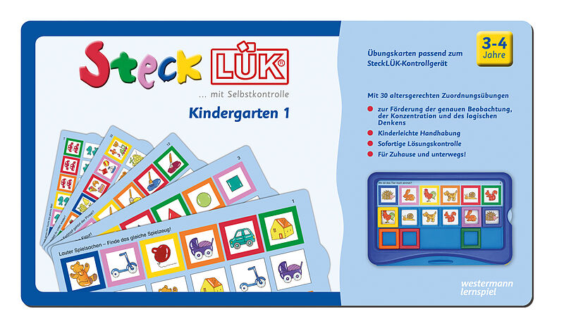 15 ZUSATZKARTEN mit 30 ergänzenden altersgerechten Zuordnungsübungen. Zur Förderung der genauen Beobachtung, der Konzentration, des logischen Denkens sowie der Feinmotorik durch das Einsetzen der Rahmen. Zur Bearbeitung des Kartensatzes wird ein SteckLÜK-Kont... 15 ZUSATZKARTEN