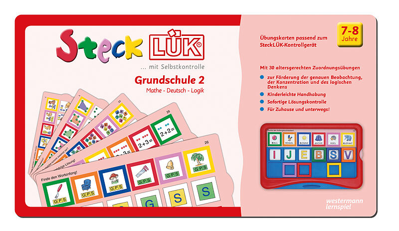 15 ZUSATZKARTEN mit 30 ergänzenden altersgerechten Zuordnungsübungen rund um Mathematik, Deutsch und logisches Denken. SteckLÜK fördert die Konzentration sowie die Feinmotorik durch das Einsetzen der Rahmen. Zur Bearbeitung des Kartensatzes wird ein SteckLÜK-...