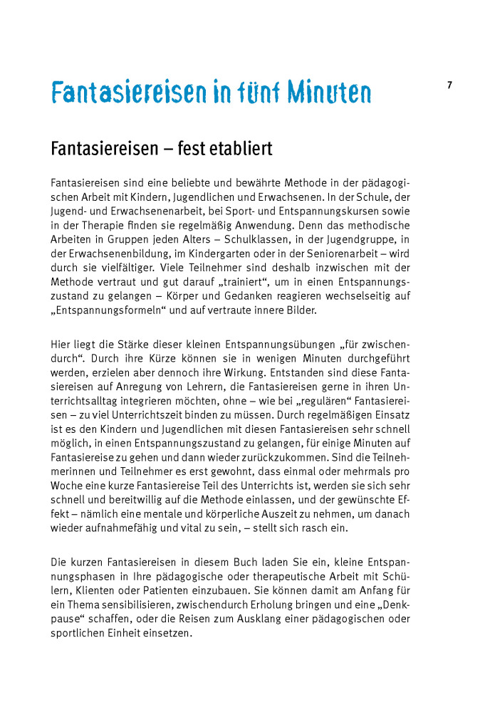 Diese kurzen Fantasiereisen für Unterricht und Jugendarbeit helfen Schülern, körperliche und geistige Entspannung aktiv herbeizuführen, um wieder bei sich selbst anzukommen. Im Schulalltag und in der Jugendarbeit helfen Fantasiereisen den Schülern, innerhalb w...