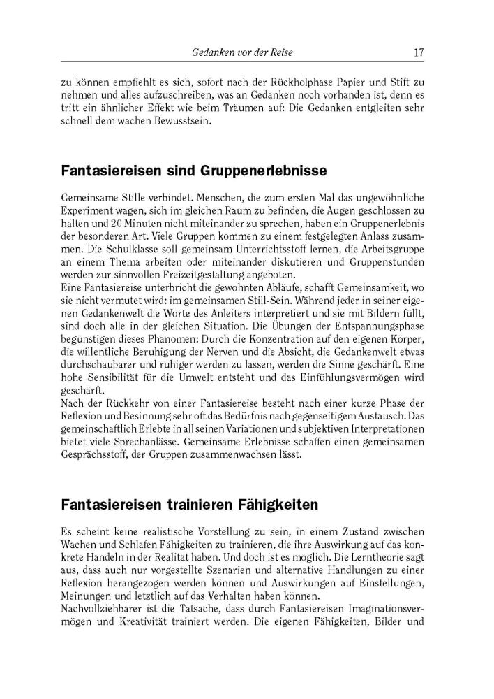Diese 40 Fantasiereisen regen auf zwanglose Weise zur Selbstreflexion an, fördern die Kreativität oder führen einfach nur zu Entspannung oder Konzentration. Fantasiereisen für Schule, Jugendhilfe und Therapie Mit diesen Fantasiereisen erkunden Jugendliche inne...