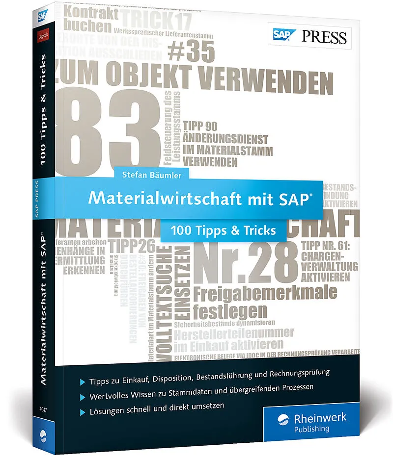 Über dieses BuchSie arbeiten schon eine Weile mit MM und wundern sich dennoch, dass manche Abläufe so umständlich sind? Dann ist dieses Buch genau das richtige für Sie. Stefan Bäumler zeigt Ihnen, wie Sie Ihre Aufgaben in Einkauf, Disposition, Bestandsführung ...Über dieses BuchSie arbeiten schon eine Weile mit MM und wundern sich dennoch, dass manche Abläufe so umständlich sind? Dann ist dieses Buch genau das richtige für Sie. Stefan Bäumler zeigt Ihnen, wie Sie Ihre Aufgaben in Einkauf, Disposition, Bestandsführung und Rechnungsprüfung mit wenigen Kniffen beschleunigen. Alle Tipps sind praxiserprobt, leicht verständlich und kommen sofort zum Wesentlichen probieren Sie es gleich aus!Aus dem Inhalt:EinkaufsbelegeGenehmigungs- und Freigabeverfahren in der FremdbeschaffungDispositionBestandsführung und ChargenverwaltungRechnungsprüfungExterne DienstleistungenKomponentenübergreifende Geschäftsprozesse und IntegrationStammdaten