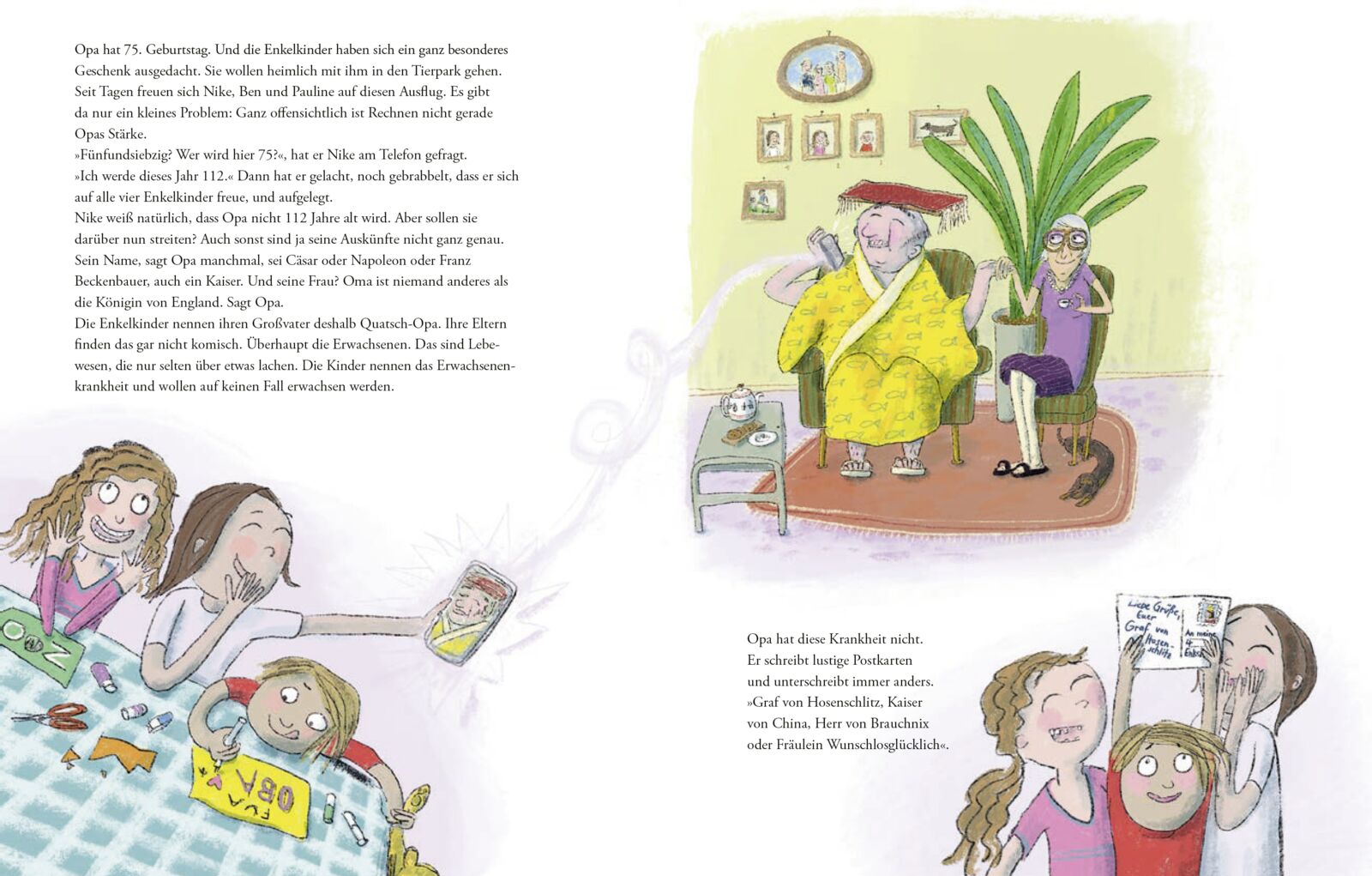 Ein liebevolles Bilderbuch zum Vorlesen zum Thema Demenz. Opa behauptet, er sei der Kaiser von China. Und er sagt, er wohne in einem Hotel. Aber als Pauline, Ben und Nike mit ihrem Opa in den Zoo wollen, steht an dem Hotel sowas wie Heim. Egal. Am Kassenhäusc...