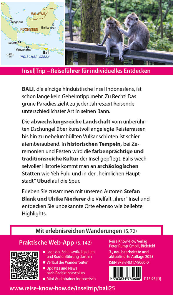 Bali, die einzige hinduistische Insel Indonesiens, ist schon lange kein Geheimtipp mehr. Zu Recht! Das grüne Paradies zieht zu jeder Jahreszeit Reisende unterschiedlichster Art in seinen Bann. Die abwechslungsreiche Landschaft vom unberührten Dschungel über ku...