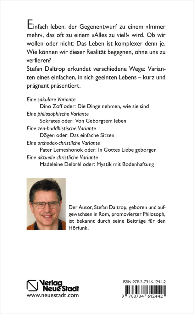Einfach leben: der Gegenentwurf zu einem »Immer mehr«, das oft zu einem »Alles zu viel!« wird. Ob wir wollen oder nicht: Das Leben ist komplexer denn je. Wie können wir dieser Realität begegnen, ohne uns zu verlieren? Stefan Daltrop erkundet verschiedene Wege:...
