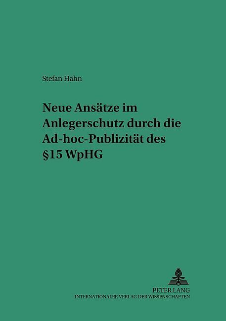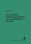 Der Autor nimmt unter der Prämisse eines wirksamen Anlegerschutzes eine Neukonzeptionierung des Anlegerbegriffes und eine Neuverortung der Ad-hoc-Publizität im Rahmen der Unternehmenspublizität vor. Auf dieser Grundlage entwickelt er Grundsätze ordnungsgemäßer...