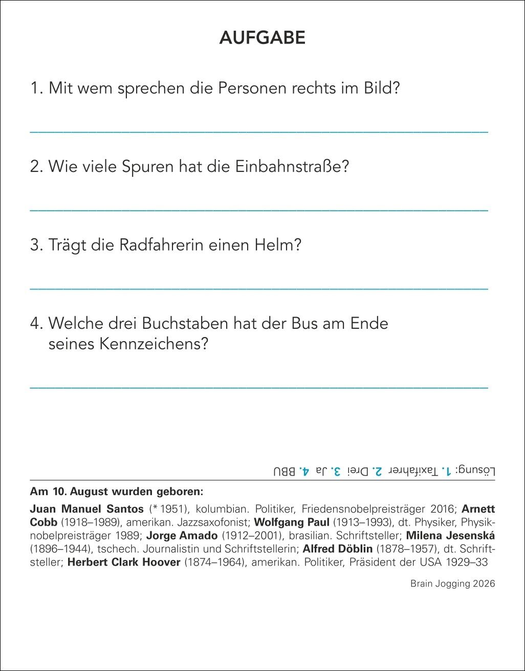 '- Bringt die grauen Zellen auf Hochtouren: Mit diesem Tages-Tischkalender 2026 halten Sie Ihr Gedächtnis fit - Der Abreißkalender für jeden Tag, voll kniffliger Rätsel und Denksportaufgaben - Hirntraining mit Spaß: Konzentrationstraining mit viel Abwechslung ...