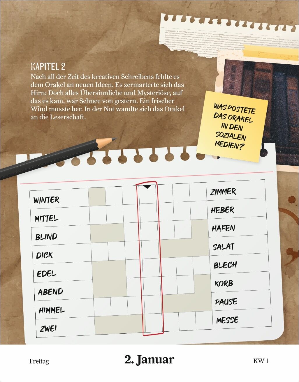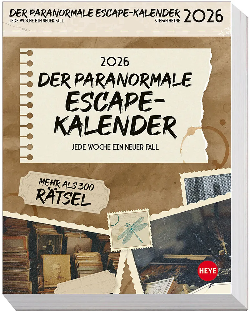 Gehirnjogging mit packender Hintergrund-Story: Der Escape-Rätsel-Kalender 2026 Täglich neuer Tüftelstoff: Tageskalender zum Abreißen mit allem, was echte Knobel-Fans glücklich macht Woche für Woche ein neuer geheimnisvoller Fall: Stefan Heine bietet variantenr...