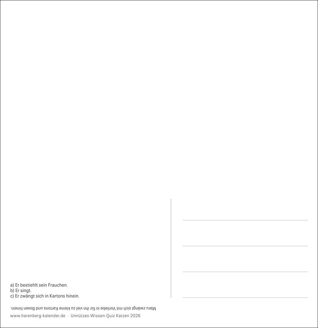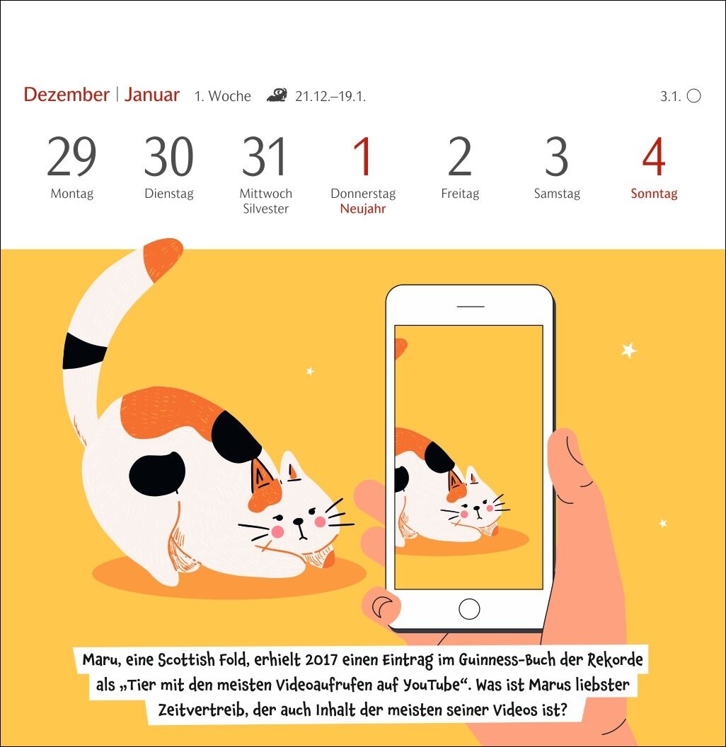 Unnütz, aber tierisch lustig: Katzenwissen im Kalender-Format Berühmte Katzen, wahnwitzige Rekorde und Fakten, die sonst keiner kennt Kalender im Postkartenformat als dekorativer Hingucker im kompakten 16,5 x 17,7 cm-Format Katzen-Quiz zum Sammeln, Verschicken...