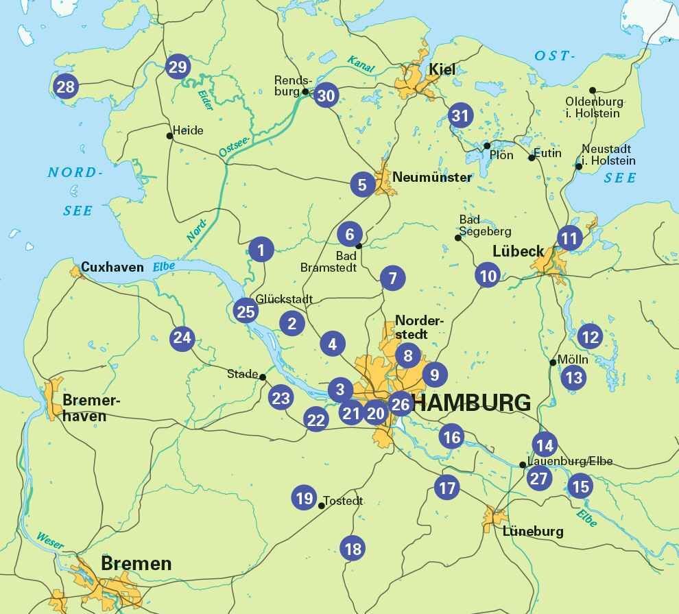 26 Rundtouren auf den landschaftlich schönsten Strecken zu den bedeutendsten Sehenswürdigkeiten der Region. Rund um Hamburg erstreckt sich das norddeutsche Binnenland in all seinen Facetten - Moore, Heide, Wälder und Seen bieten ideale Voraussetzungen für abwe...