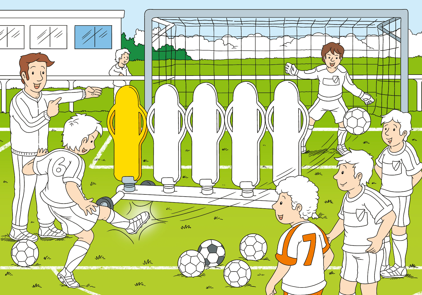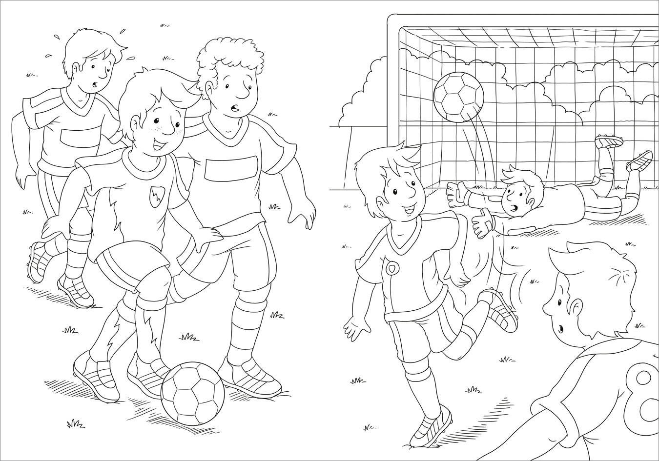 Fallrückzieher, Torschuss oder Freistoßtraining die lebendigen Illustrationen in diesem Malbuch lassen die Herzen junger Fußballfans höherschlagen. Die teilweise bunt eingefärbten Spielszenen zum Fertigmalen wechseln sich mit actionreichen schwarz-weißen Motiv...