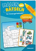 Traktor, Bagger, Rennauto: In diesem Mal- und Rätselheft dreht sich alles um Fahrzeuge. Da verbinden sich geheimnisvolle Symbole zu einem Polizeiauto und auf der Baustelle bei Kipplaster und Bagger haben sich fünf Fehler versteckt. Wie kann man Schritt für Sch...