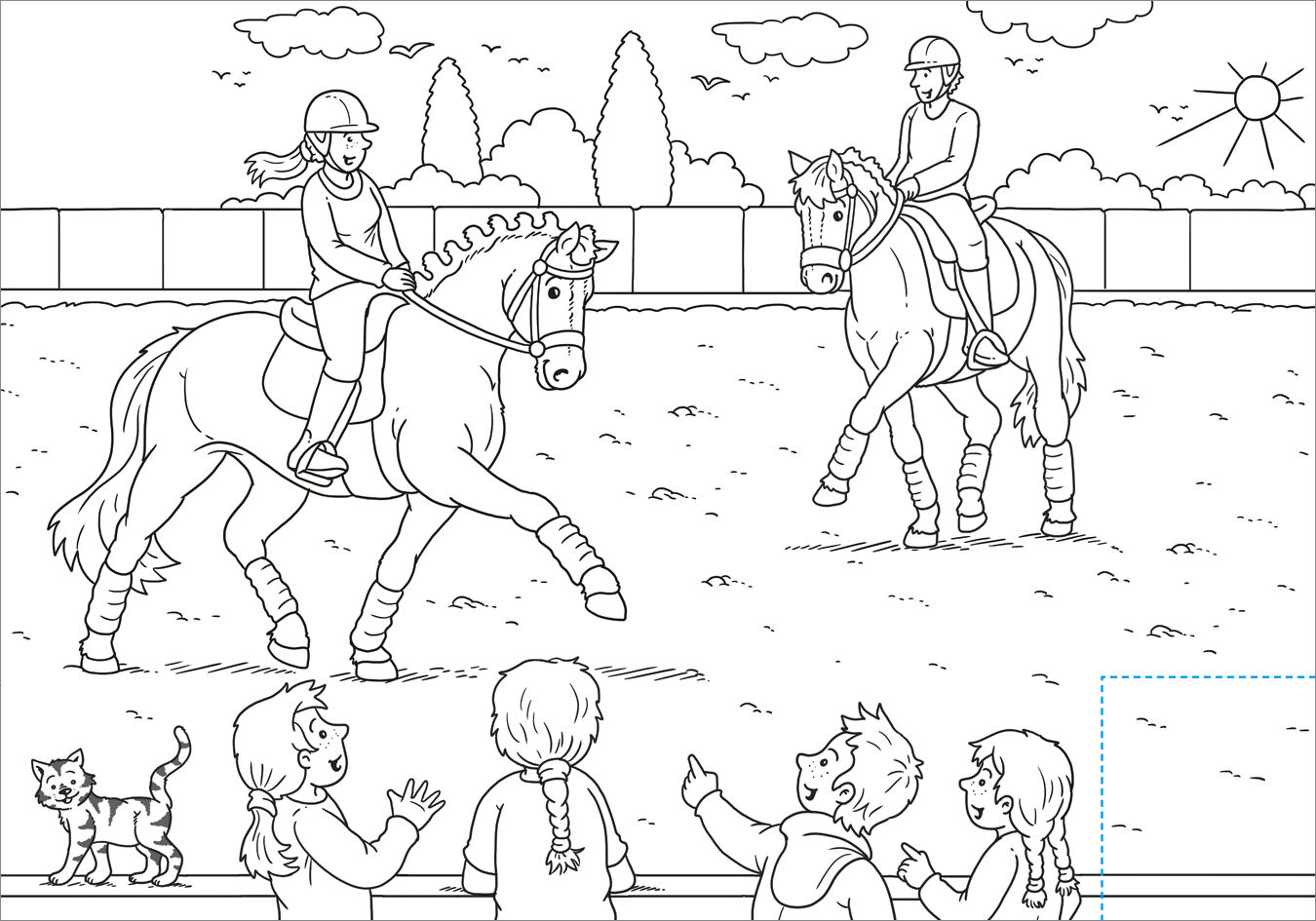 Auf dem Reiterhof ist viel los! Die Pferde und Ponys wollen ausgeritten werden, der Stall ausgemistet und die Tiere gefüttert! Die vielen abwechslungsreichen Motive warten nur darauf, ausgemalt zu werden. Unter gekennzeichneten Schneideflächen verstecken sich ...