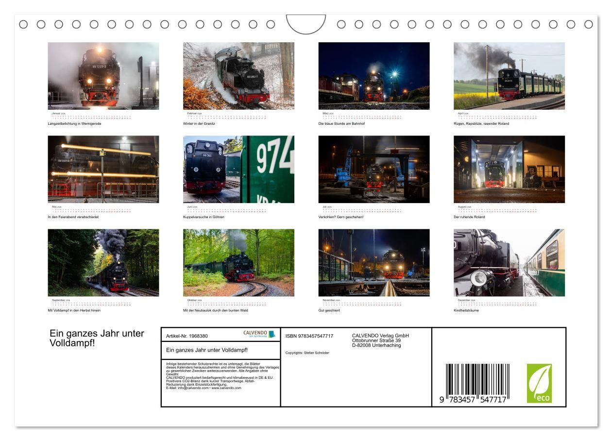 In diesem Kalender sind aktuelle Bilder von Dampflokomotiven aus dem Harz und der Insel Rügen zu sehen. Wer Dampfloks mag, wird sich über diese neuen Fotos freuen. Fans von Schmalspurbahnen kommen hier in den Genuss, die Loks und Züge in den jeweiligen Jahresz...