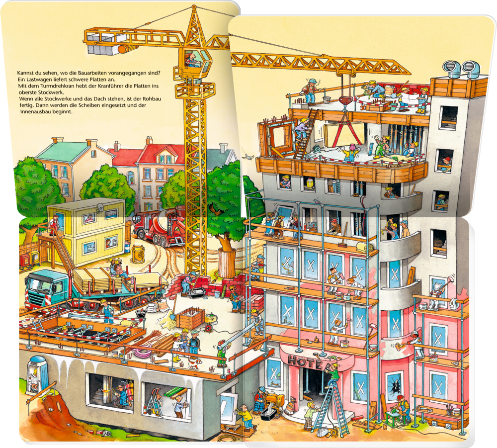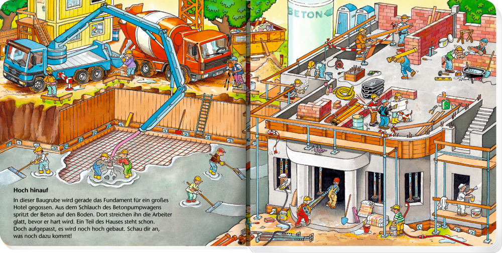 Baustellen über und unter der Erde In der Stadt gibt es viele große Baustellen. Aber nicht alle Baustellen sind gleich. Manchmal wird sehr hoch nach oben gebaut und manchmal tief hinunter unter die Erde. Und wie bekommt man eine Brücke über den Fluss? An drei ...