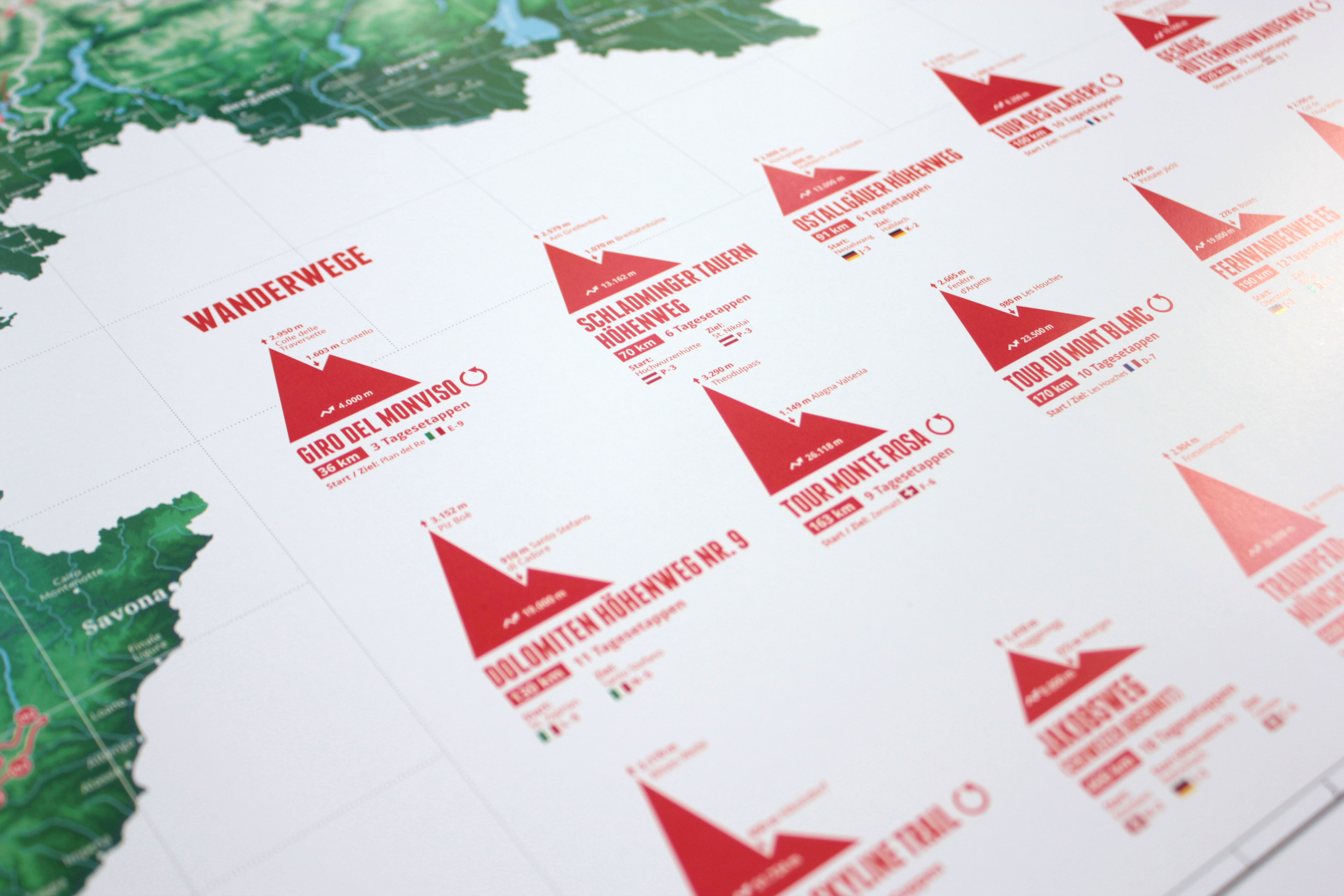 Die Karte bildet die 111 wichtigsten Berge im gesamten Alpenraum ab. 20 besondere Wanderwege in den Alpen vervollständigen die Karte. Zur Auswahl der Wege haben wir uns an Beliebtheit, regionaler Verteilung und der Streckenlänge orientiert, um eine große Bandb...