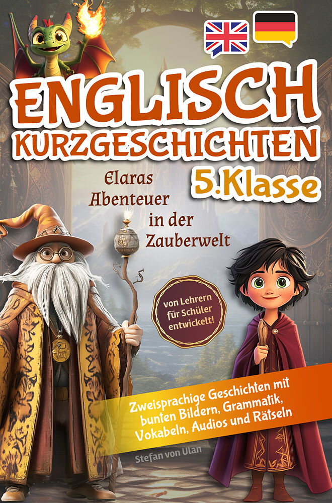 Englisch lernen mit Spaß und Magie - von Lehrern für Schüler der 5. Klasse entwickelt! Begleite eine mutige Zauberschülerin Elara auf ihren Abenteuern in der magischen Welt und der geheimnisvollen Zauberschule Moonspire. Stets bei ihr ist ihr Feuerdrache Flint...