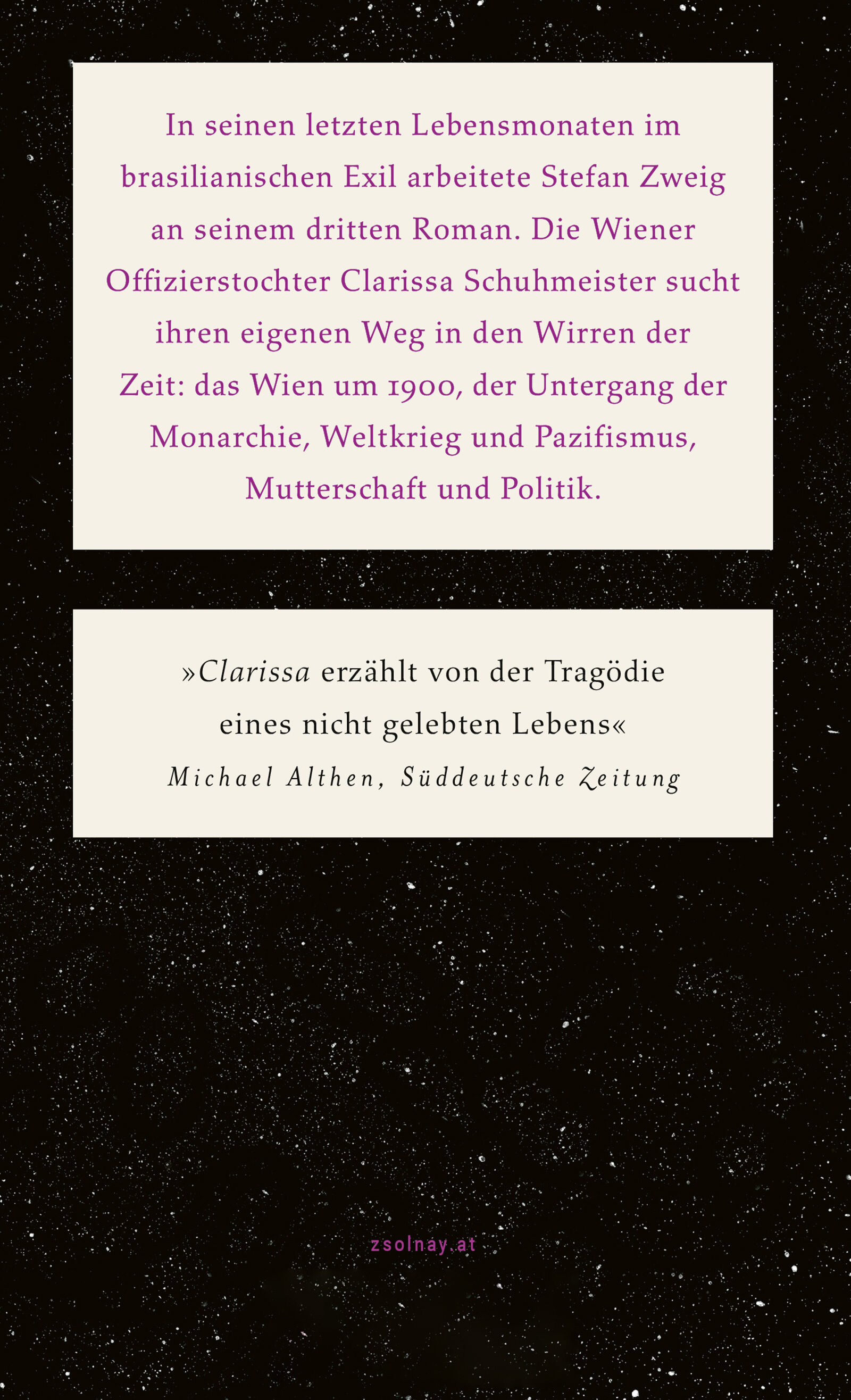Stefan Zweigs Clarissa' erzählt von der Tragödie eines nicht gelebten Lebens (Michael Althen, Süddeutsche Zeitung). Abschluss der Salzburger Ausgabe In seinen letzten Lebensmonaten im brasilianischen Exil arbeitete Stefan Zweig an seinem dritten Roman. Die Wie...