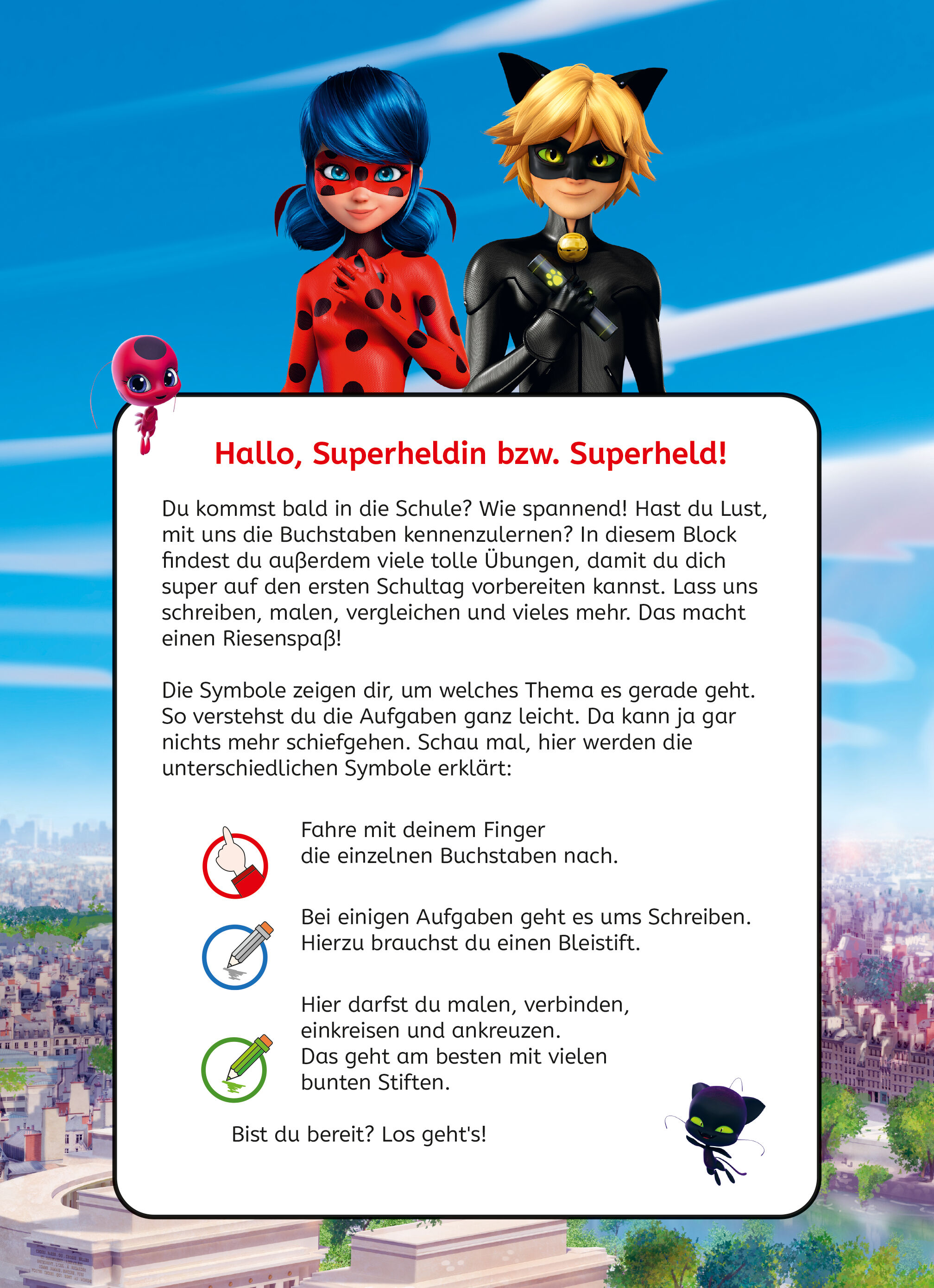Lesen und Schreiben ab 5 Jahren mit Ladybug und Cat Noir macht Schreibenlernen Spaß! Fit für die Schule mit Ladybug, Cat Noir und Co.! Mit diesem Vorschulblock lernen Kinder ab 5 Jahren spielerisch erstes Lesen und Schreiben. Durch Förderung der Konzentration ...