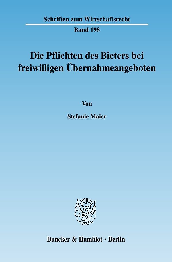 Am 01.01.2002 trat das Wertpapiererwerbs- und Übernahmegesetz (WpÜG) in Kraft, welches den Ablauf von Unternehmensübernahmen in Deutschland regelt. Ein Schwerpunkt des Gesetzes liegt auf der Normierung von Verhaltenspflichten des Bieters im Übernahmeverfahren....