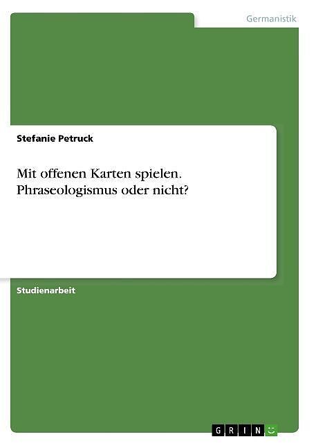 Studienarbeit aus dem Jahr 2013 im Fachbereich Germanistik - Linguistik, Note: 2,0, Universität Mannheim, Sprache: Deutsch, Abstract: Der Phraseologismus "mit offenen Karten spielen" ist ein feststehender Ausdruck, der regelmäßig in der deutschen Med...