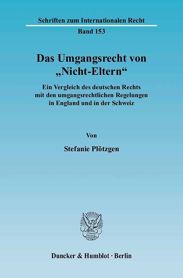 Wie ist der Umgang von "Nicht-Eltern" in anderen europäischen Ländern gestaltet? Welche Erkenntnisse für das deutsche Umgangsrecht können - mit Blick über den Tellerrand nach England und der Schweiz - im Vergleich abgeleitet werden? Anhand eines rechtsvergleic...