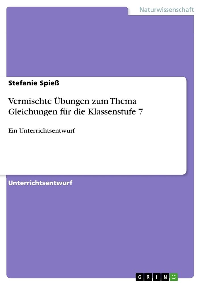 Unterrichtsentwurf aus dem Jahr 2011 im Fachbereich Didaktik - Mathematik, Note: 1,5, , Sprache: Deutsch, Abstract: In diesem ausführlichen Unterrichtsentwurf (Mathematik, Klasse 7, RS, BaWü) geht es um das Thema Gleichungen. In meiner Klasse habe ich zuvor ei...