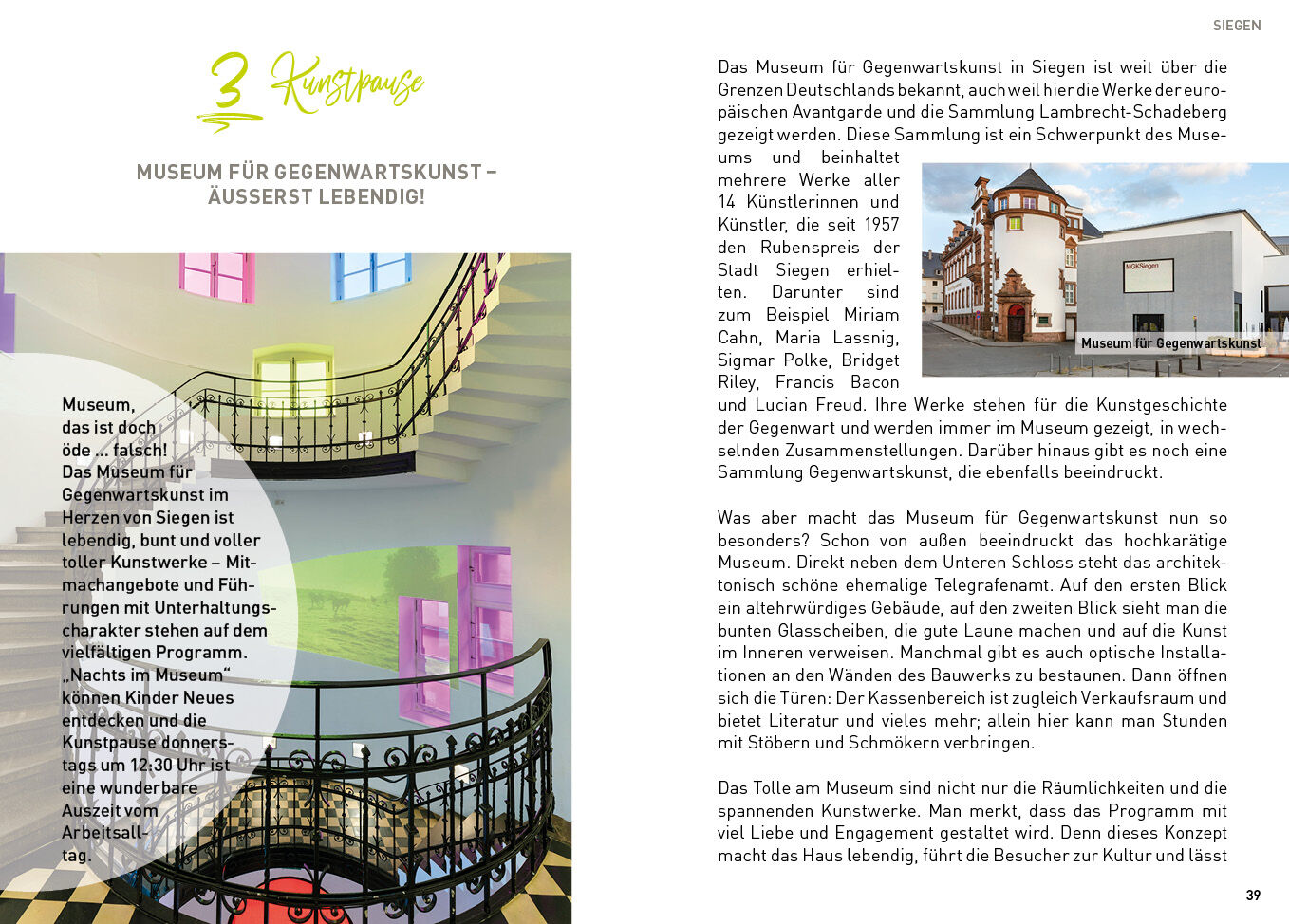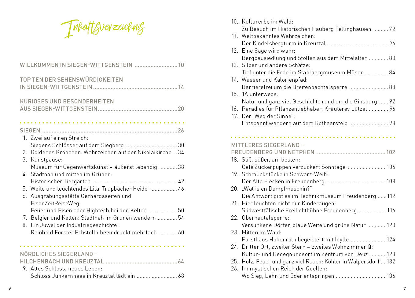 Mittelgebirgslandschaften mit malerischen Fachwerkdörfchen, sanfte Hügel, die raueren Höhenzüge des Rothaargebirges, unzählige Quellen, ursprüngliche Natur. Siegen-Wittgenstein ist märchenhaft schön. Mitten im Grünen liegt die Großstadt Siegen mit studentische...