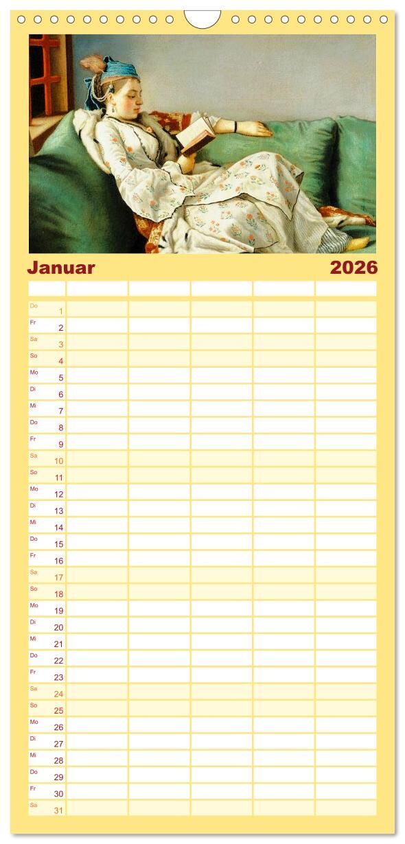 Der Kalender bietet eine Kombination aus inspirierender Botschaft, kultureller Bedeutung und ästhetischem Genuss, die den Betrachter dazu ermutigt, Bildung, Gleichberechtigung und Selbstverwirklichung zu schätzen. Die Auswahl der Kunstwerke traf die bibliophil...