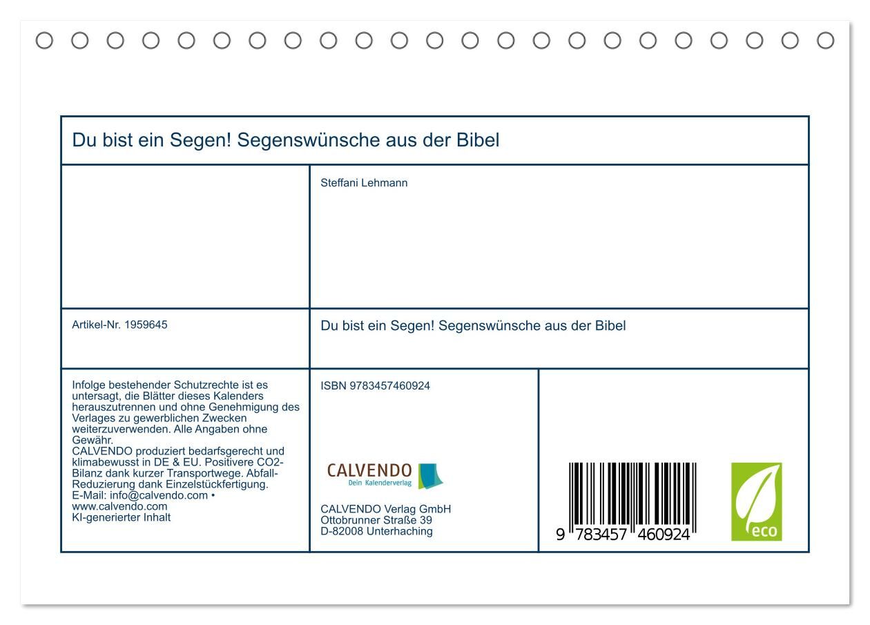 Dieser Kalender mit Segenswünschen aus der Bibel bietet kurze, aber kraftvolle Botschaften, die dazu dienen, den Betrachter zu ermutigen, zu stärken und zu inspirieren. Die hübschen Bilder, die Steffani Lehmann mit Unterstützung einer KI editiert hat, erinnern...