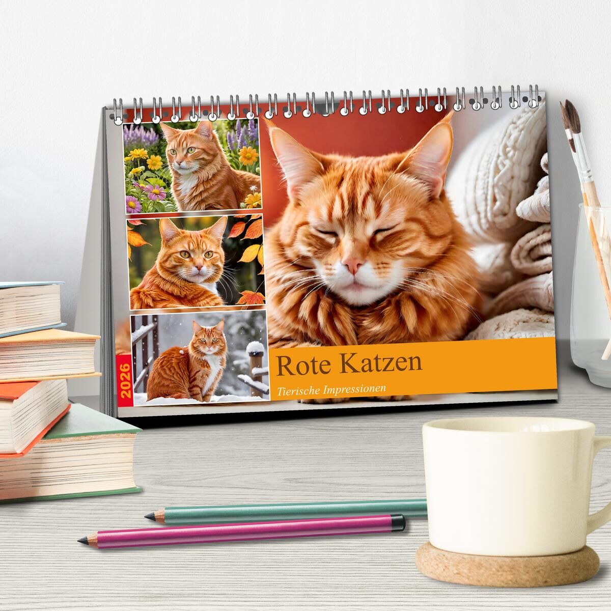Rote Katzen (Tischkalender 2026 DIN A5 quer), CALVENDO Monatskalender