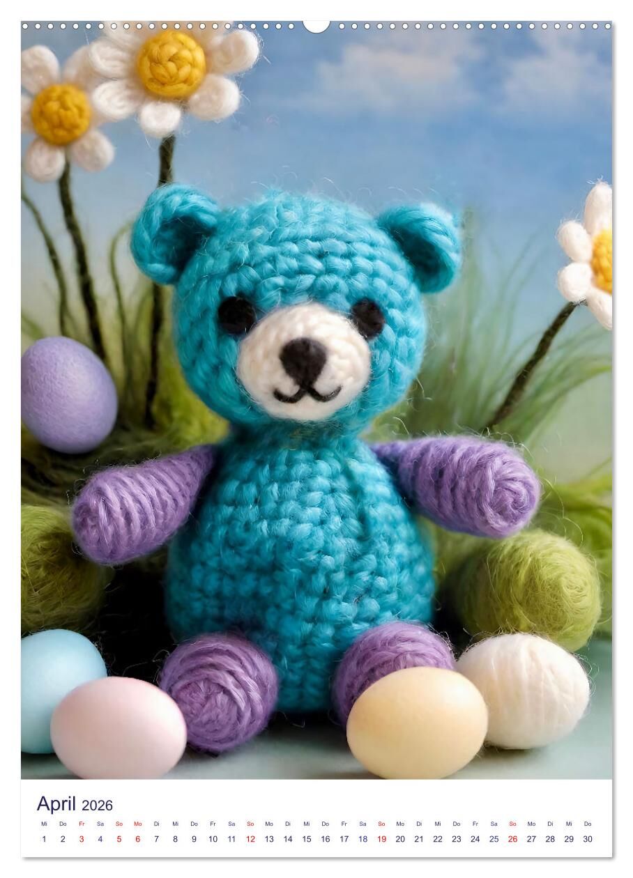 Teddys aus Wolle (hochwertiger Premium Wandkalender 2026 DIN A2 hoch), Kunstdruck in Hochglanz