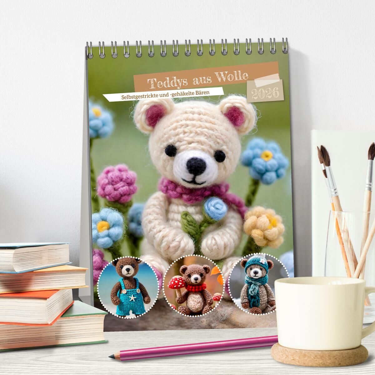 Teddys aus Wolle (Tischkalender 2026 DIN A5 hoch), CALVENDO Monatskalender