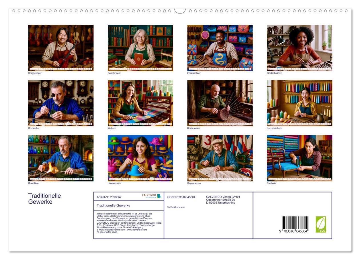 Dieser hochwertige Kalender zeigt zwölf authentische Werkstätten. Von der Buchmacherin bis zum Uhrmacher: Jeder Monat stellt ein traditionelles Handwerk vor. Die Aufnahmen, die Steffani Lehmann mit Unterstützung einer KI editiert hat, geben Einblick in Atelier...