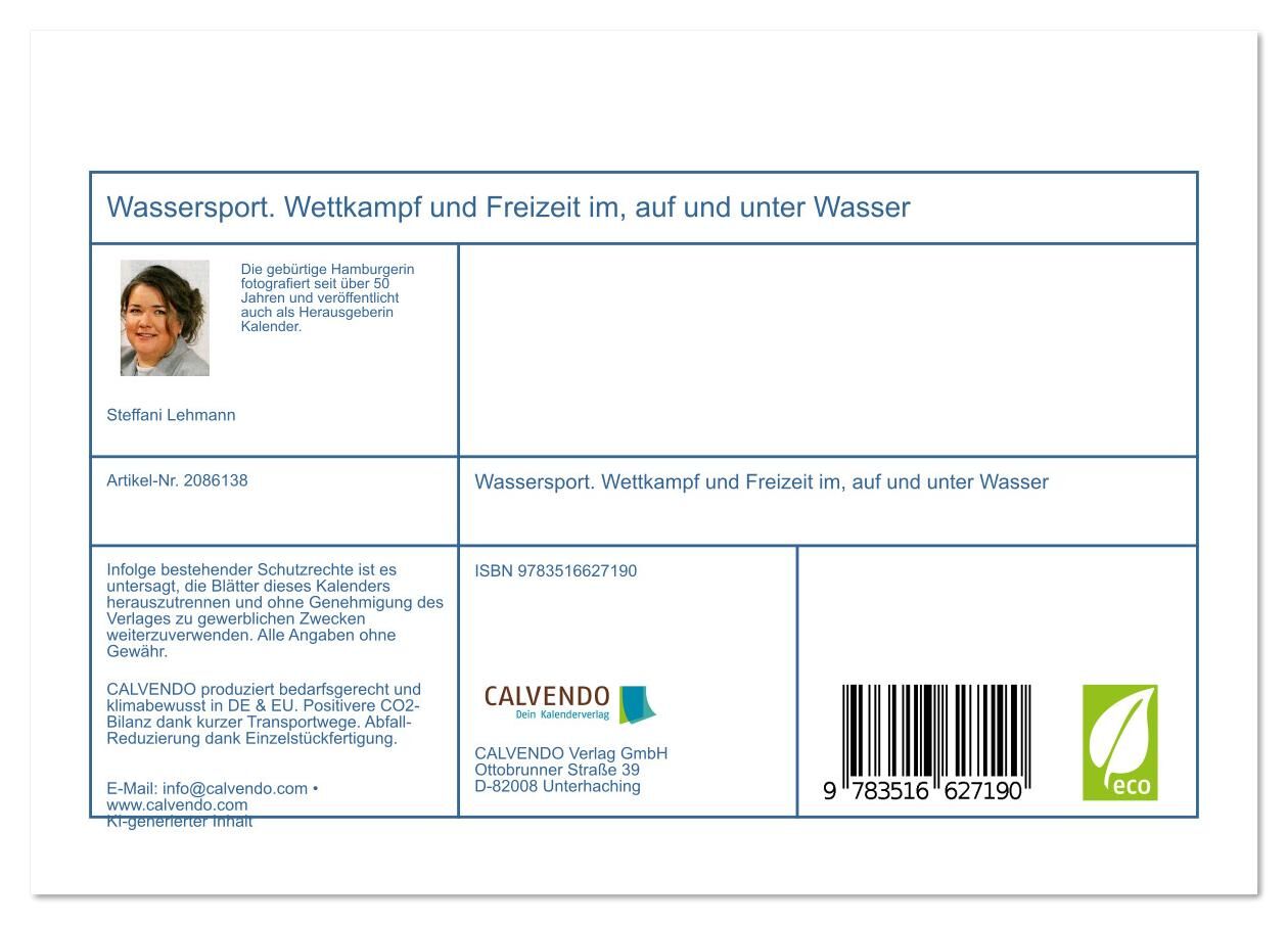 Ob im Ruderboot oder beim Kanuslalom, ob Surfen oder Kiten, ob Wasserball oder Schwimmen - wer Wassersport betreibt, hat immer Spaß und Action. Die verschiedenen Facetten des Wassersports zeigt Steffani Lehmann mit diesem abwechslungsreichen Kalender, dessen B...