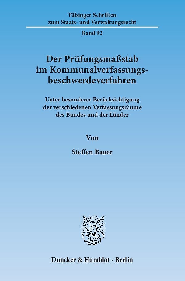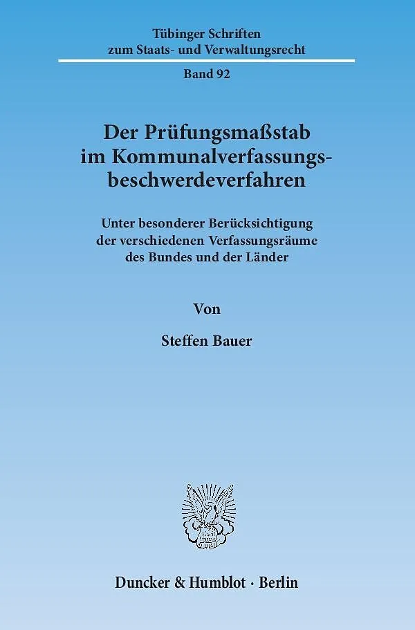 Die Kommunalverfassungsbeschwerde ist ein Verfahren, welches neben dem Grundgesetz in alle Landesverfassungen der Länder aufgenommen wurde, in denen es kommunale Untergliederungen gibt. Trotz der Vielzahl der vorhandenen Entscheidungen, ist die Frage, anhand w...