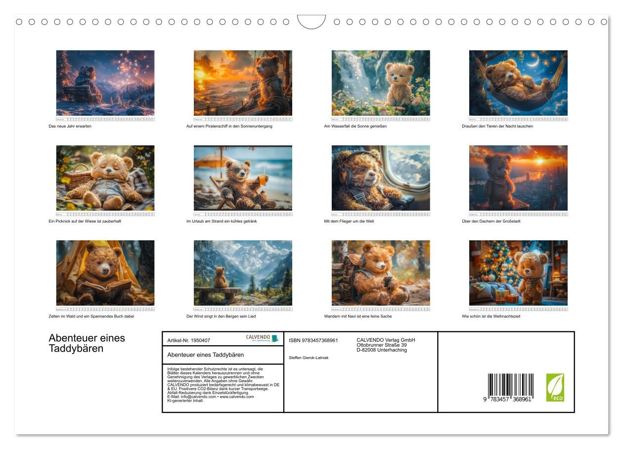 Entdecke die zauberhafte Welt mit dem Kalender "Abenteuer eines Taddybären"! Dieser liebevoll gestaltete Kalender nimmt dich jeden Monat mit auf eine neue, spannende Reise mit Taddy, dem mutigen Bären. Tauche ein in farbenfrohe Illustrationen und herzerwärmend...